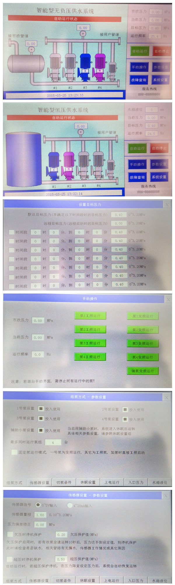 中贏恒壓變頻給水設(shè)備采用人性的視窗操作系統(tǒng),采用PLC可編程控制全自動(dòng)運(yùn)行,無(wú)需人員看守。是目前國(guó)內(nèi)最為先進(jìn)的高層供水設(shè)備之一,它高度智能,自動(dòng)化程度高,系統(tǒng)設(shè)計(jì)簡(jiǎn)單明了,真正的滿(mǎn)足了任何客戶(hù)的要求,操作設(shè)備、調(diào)整參數(shù),像我們玩手機(jī)一樣簡(jiǎn)單,讓不懂行的客戶(hù)也能成為用水專(zhuān)家。